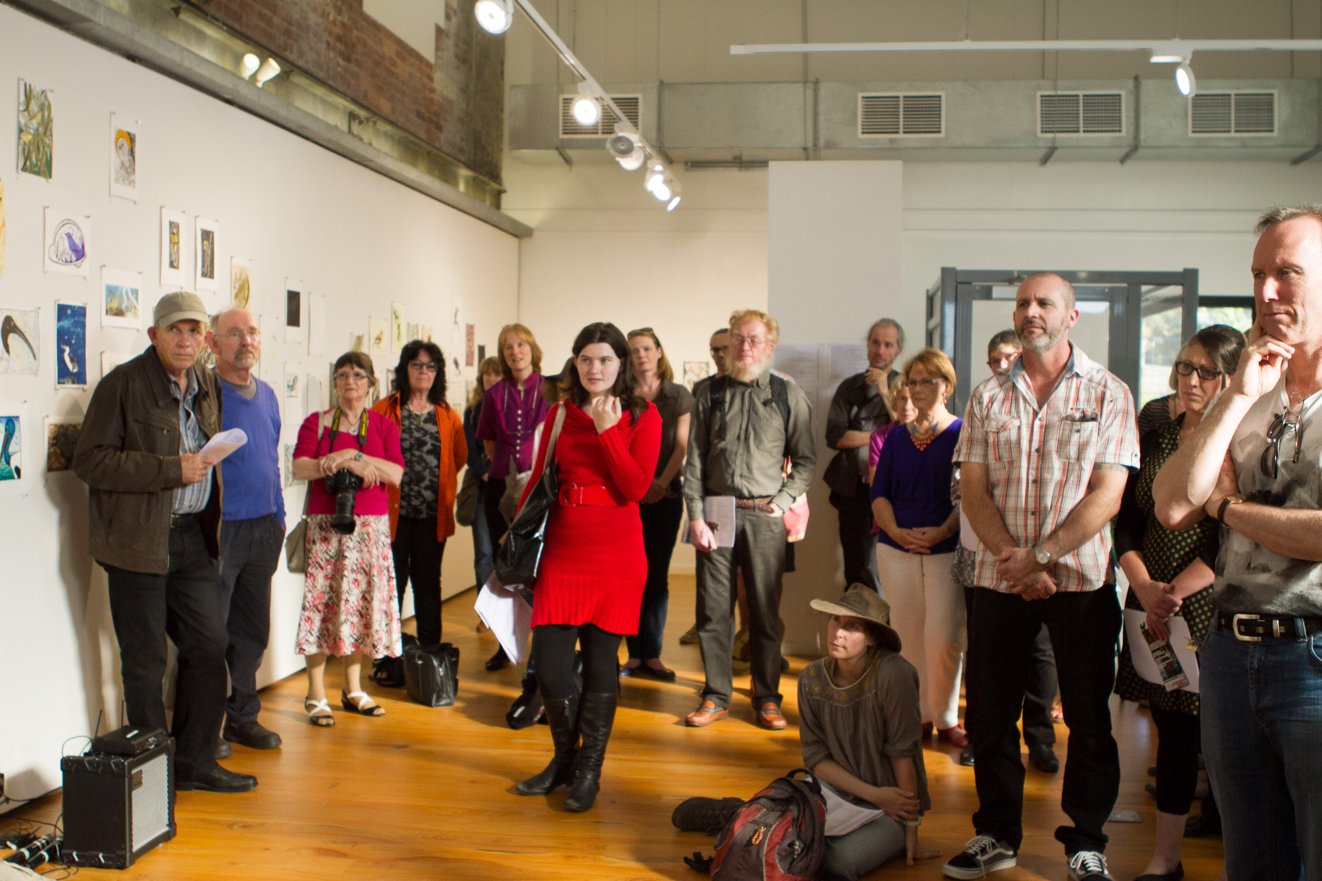 On the final weekend of the exhibition I gave a talk about Bimbleblebox 153 birds and invited the artists that were in attendance to speak about their artwork, while writer Gabrielle Sheldon read her poem.  Jo Bragg from EDO Qld was also able to give us an update on how the Bimblebox Nature Refuge currently stands with the proposed coal mining plans to resume and mine the property. The afternoon talks were an informal session which was also a lot of fun.  Thank you to everyone who came along and to all that spoke and contributed.