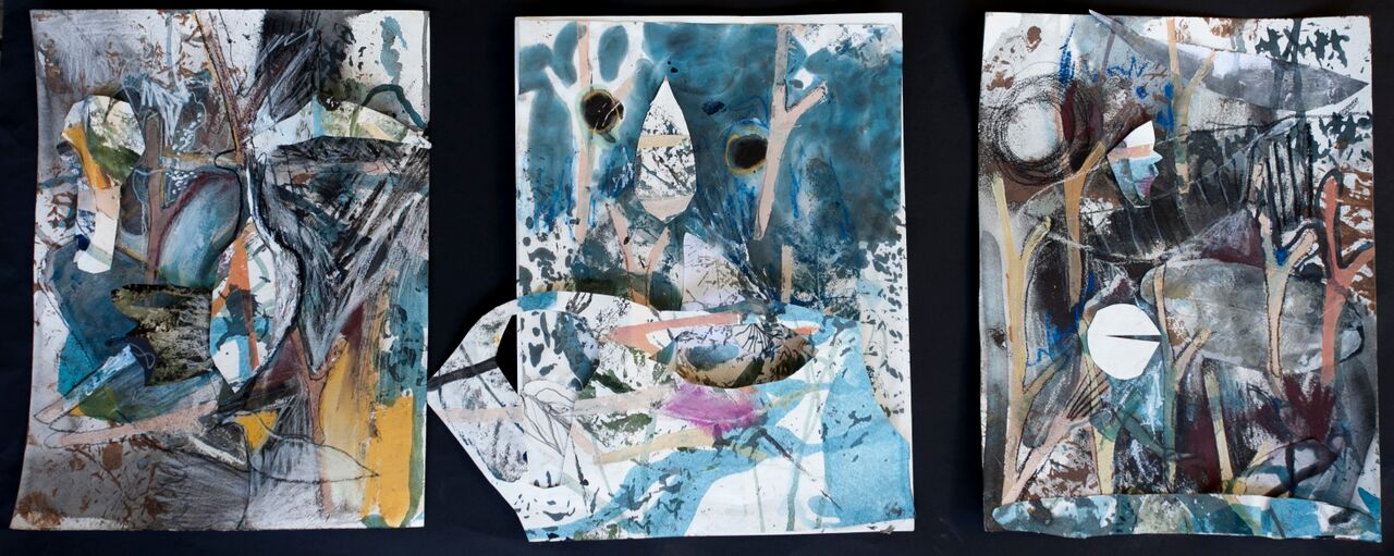 Hollows in the fallen timber – Bimblebox, Rosie Lloyd-Giblett, collage on paper, H 42cm x 52cm, photo by Tonia Cecil.