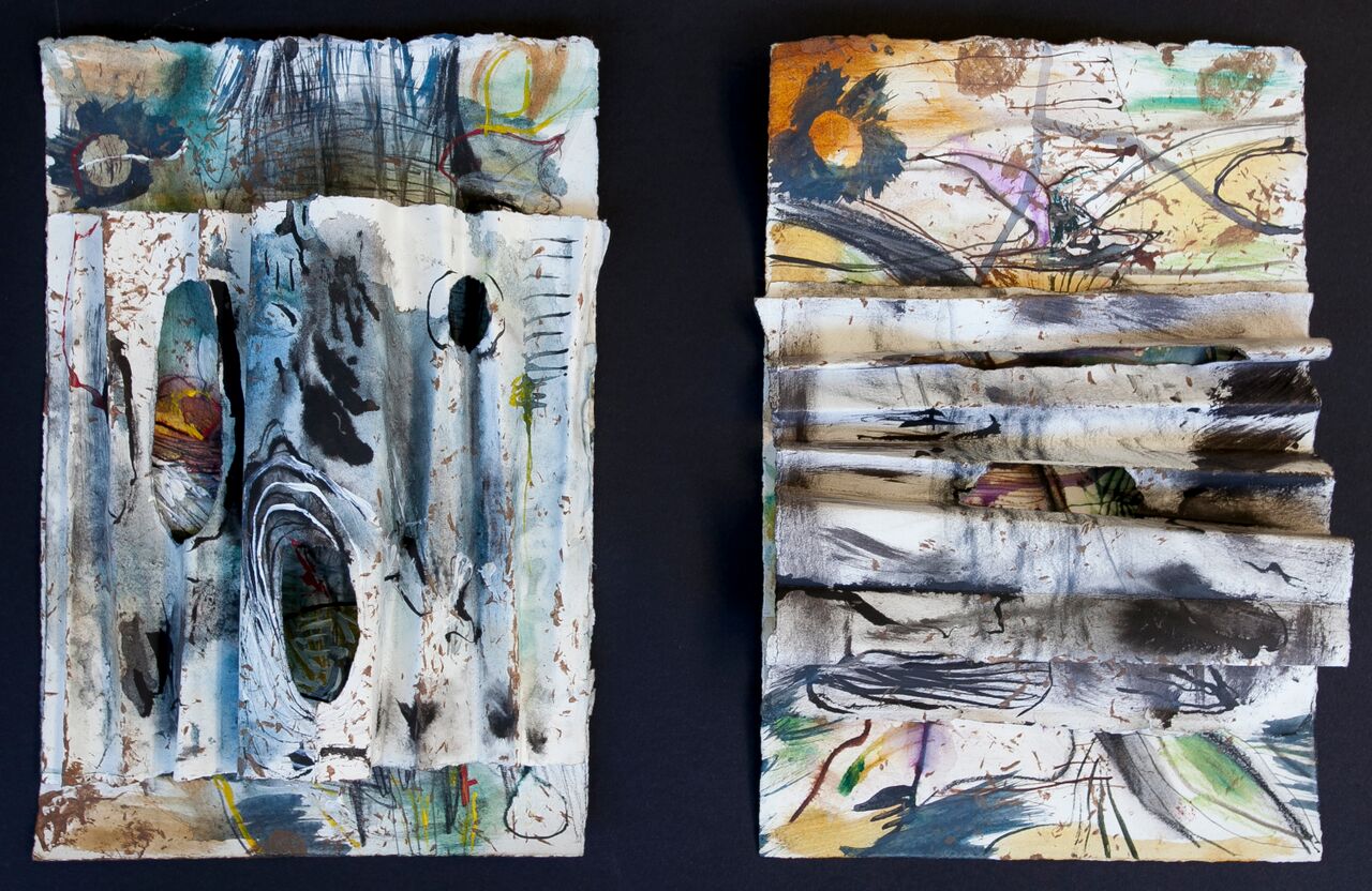 Grandmothers tree,  Rosie Lloyd Giblett,  ink, charcoal pastel on paper, H 120cm x W 200cm (Concertina), photo by tonia Cecil.