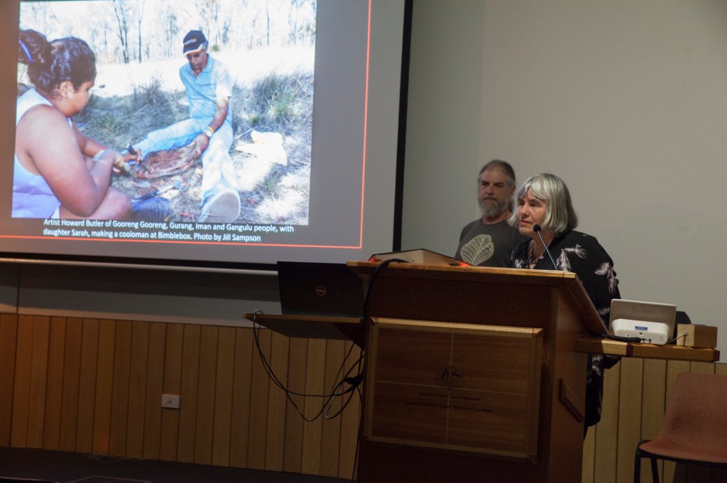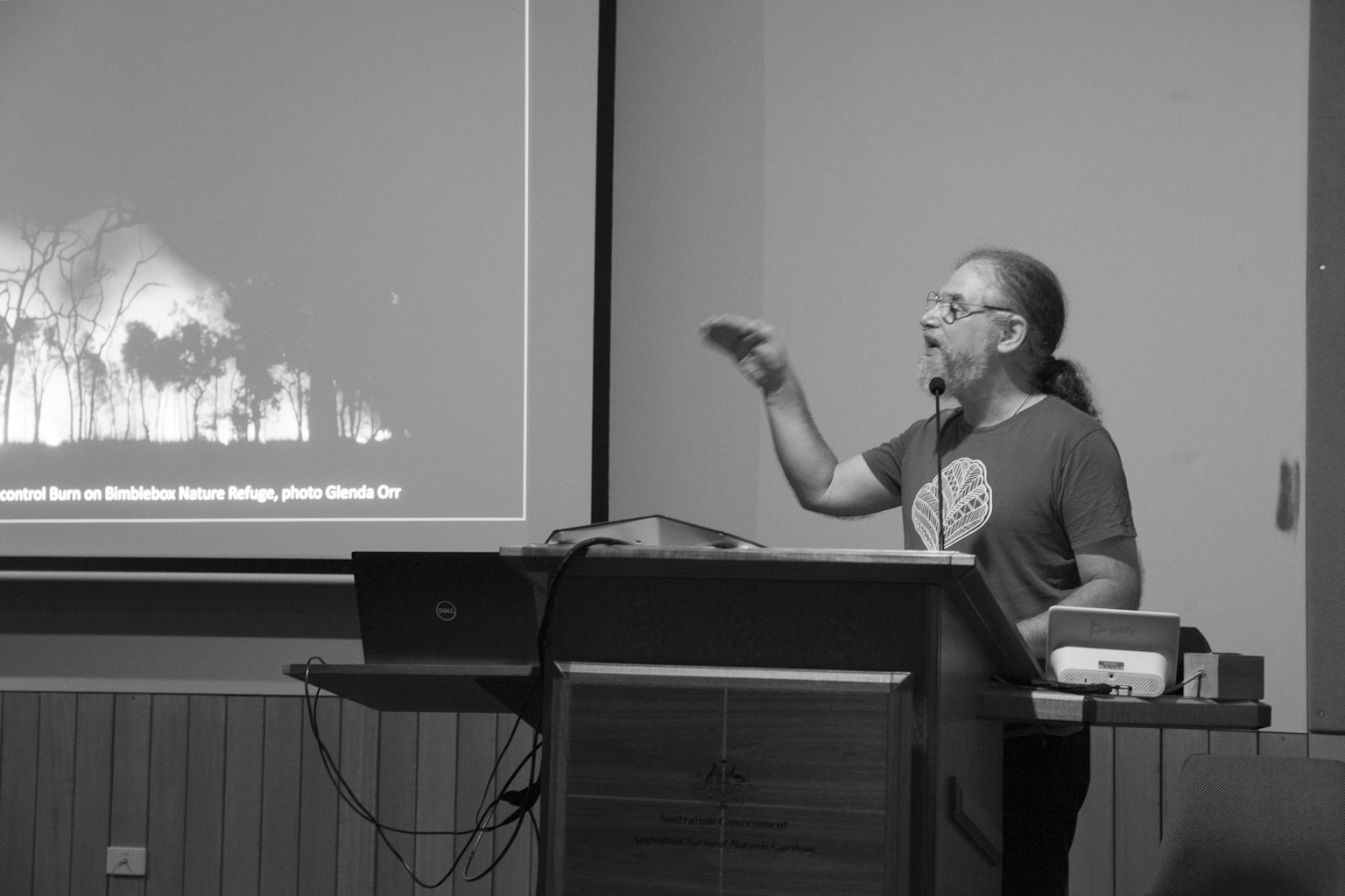 Megan Donaldson of the Australian National Botanic Gardens delivering the acknowledgement to country in Ngunawal language, (image cropped) photo Dave Wong.