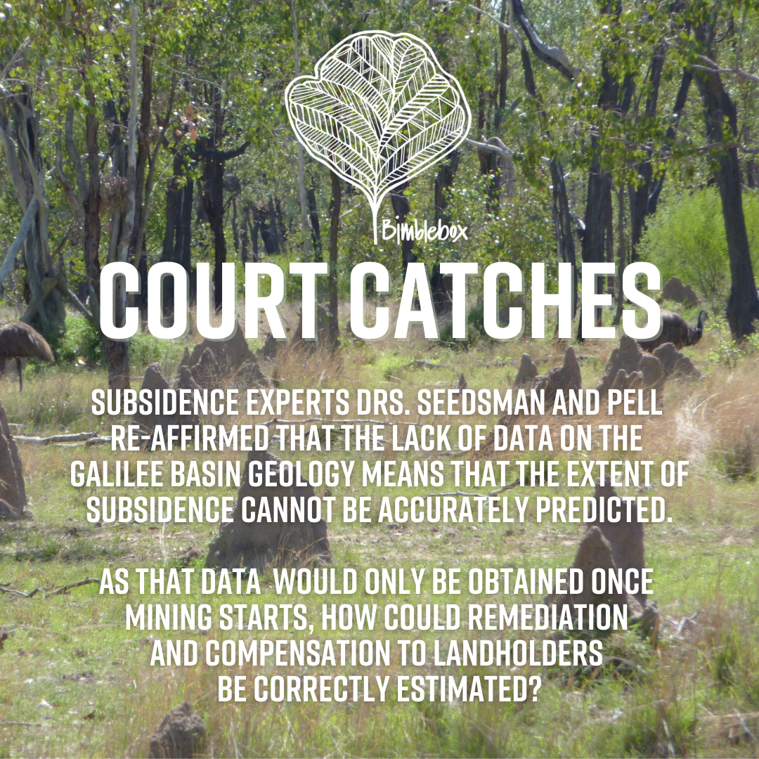 Below I have included the ‘Court catches’ from the week of the 26 – 29 April, 2022. Each day The Bimblebox Alliance aims to provide a snapshot of important discussion that happened in the court on that day. You can see these on facebook, instagram and Linked in.