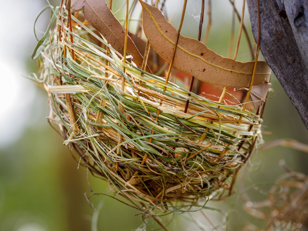“I was devastated by the stark comparison between Bimblebox and the neighbouring property, which had clear felled grasslands. What struck me was the lack of habitat next door. This inspired me to make my nest-like weaving, which I have called “Insecure Housing” Dianne Brown